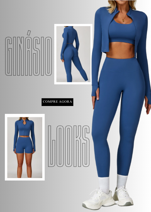 Fato de Treino 2 Peças com Leggings de Ginásio, Top Curto de Manga Comprida