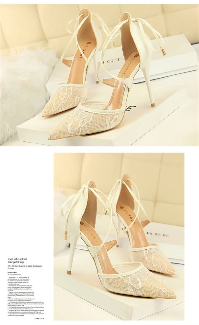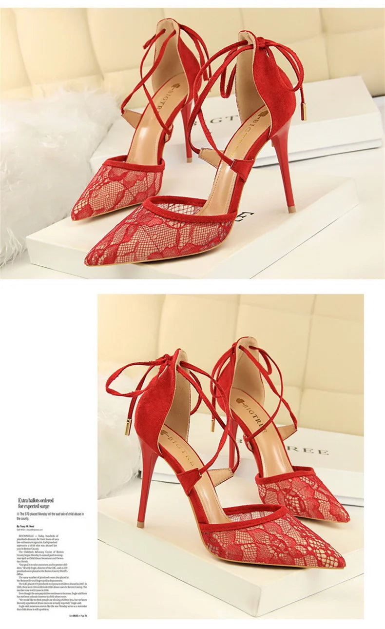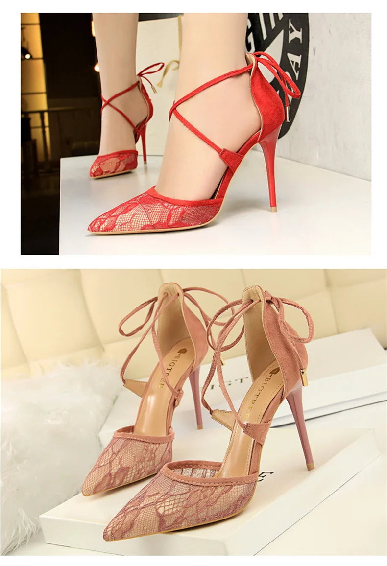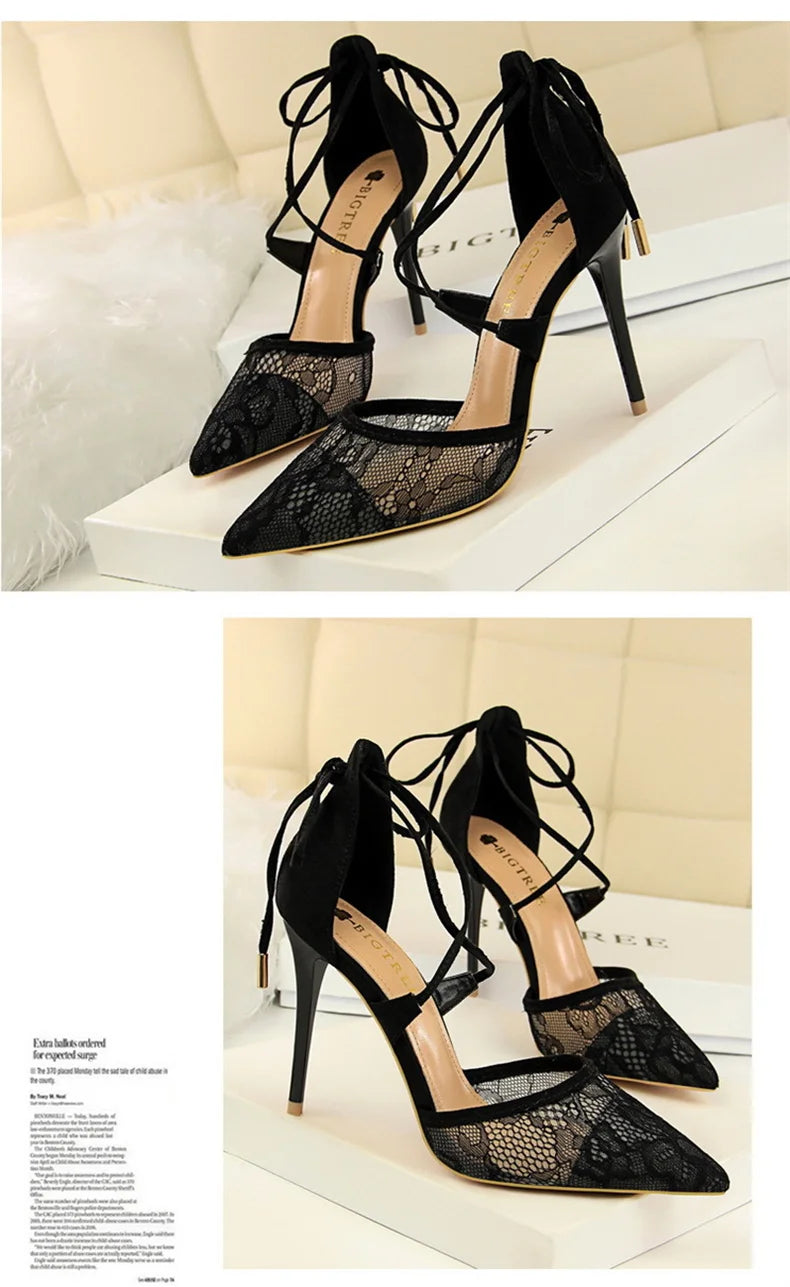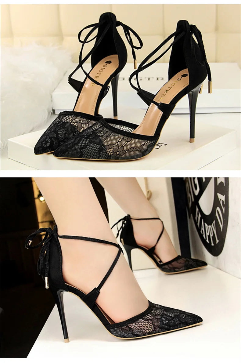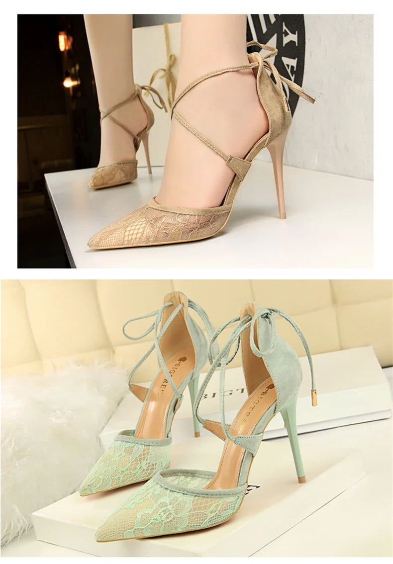 Salto Alto Estileto, Biqueira Pontiaguda, Tiras Cruzadas com Laço