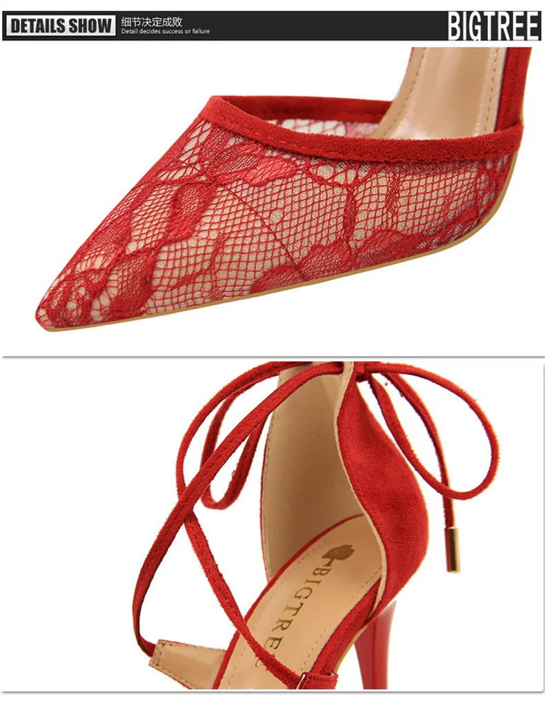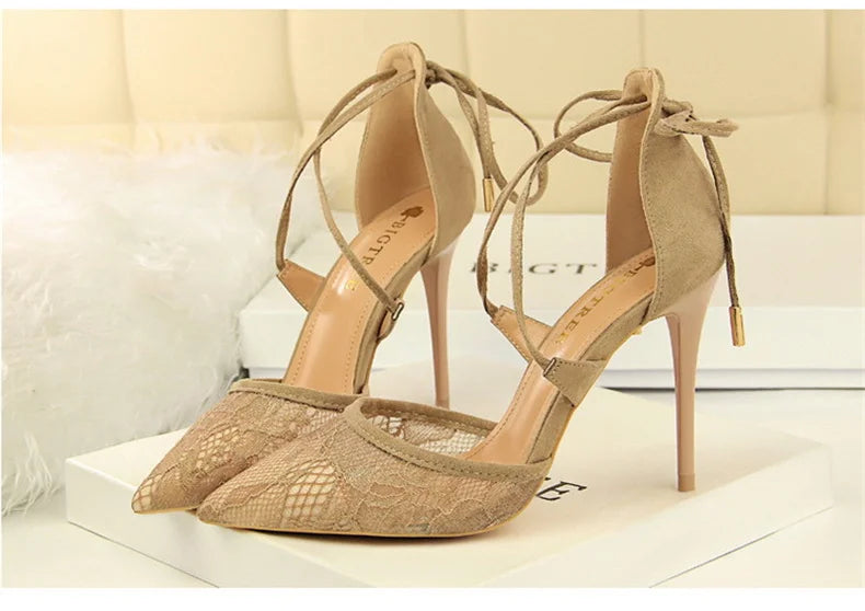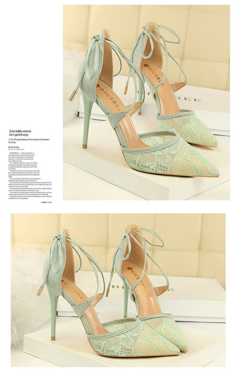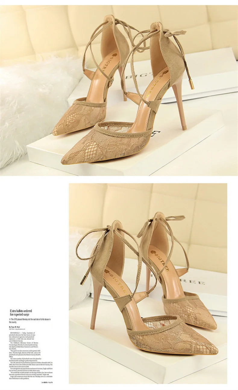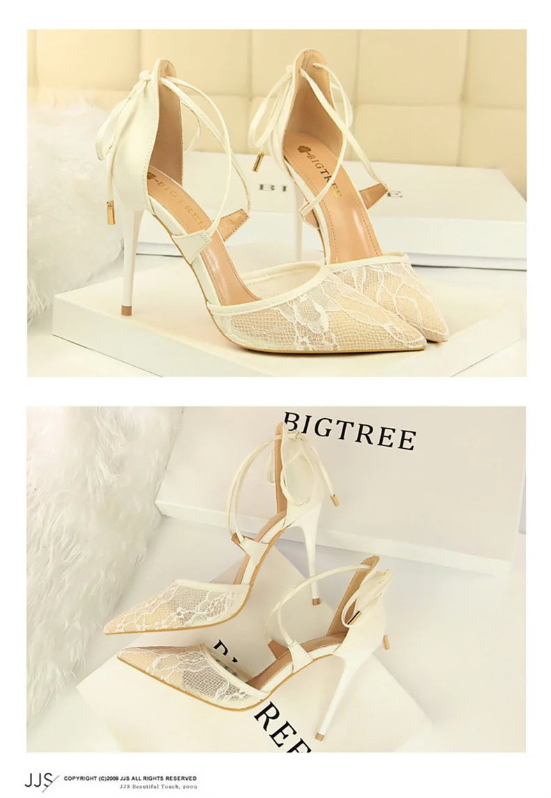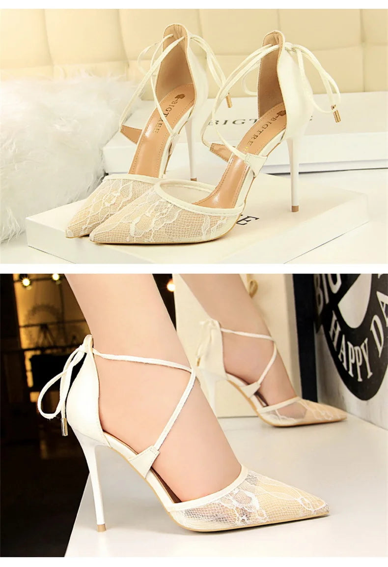 Salto Alto Estileto, Biqueira Pontiaguda, Tiras Cruzadas com Laço