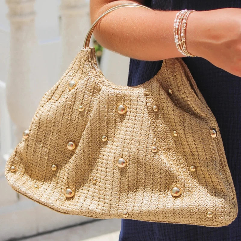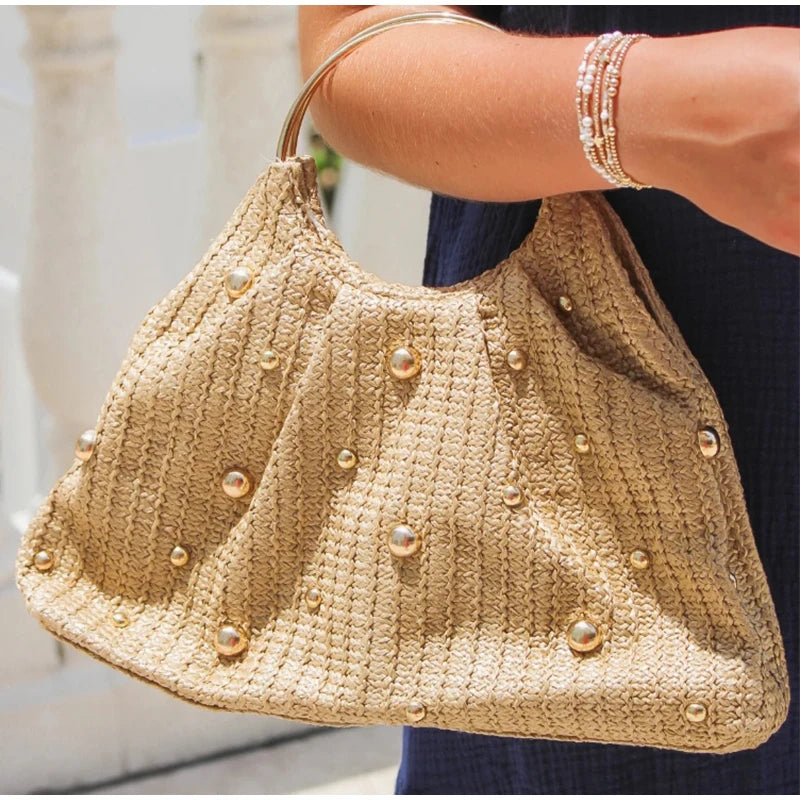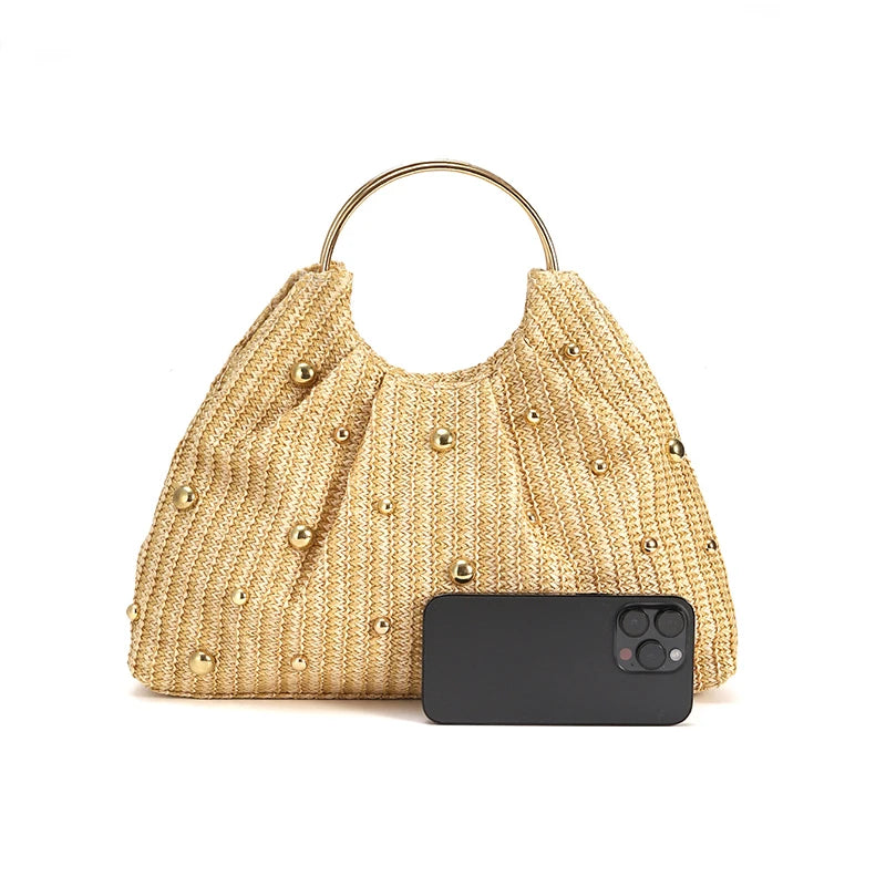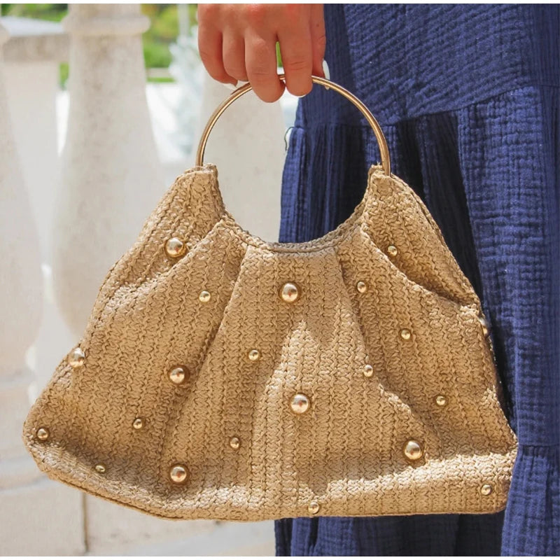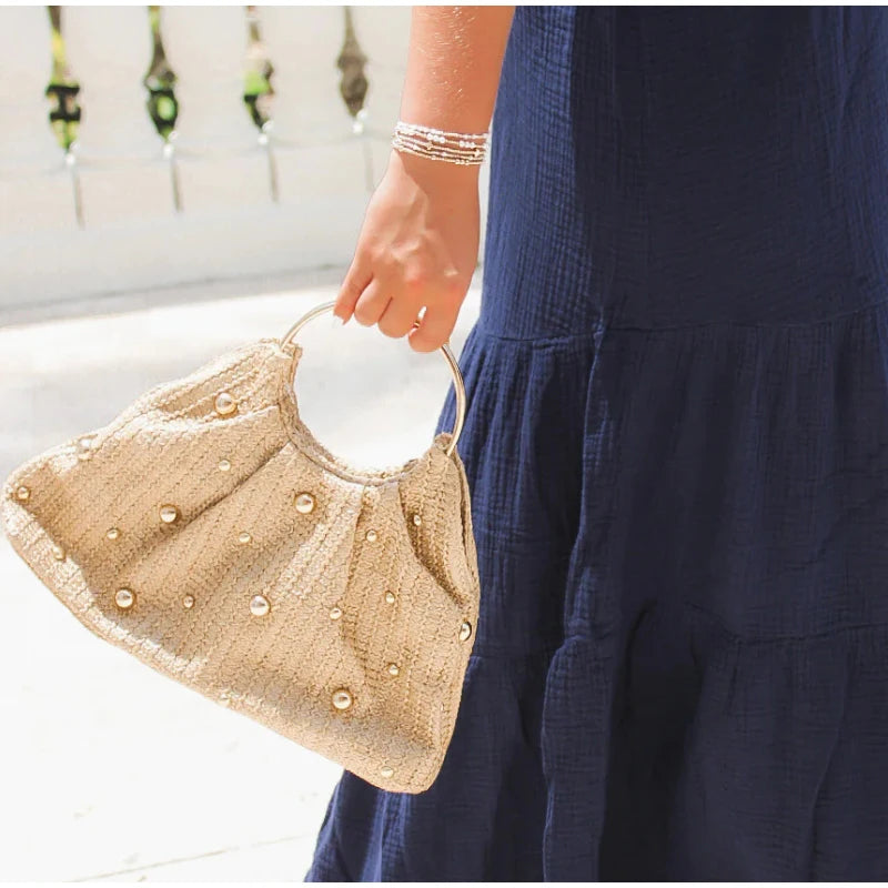 Mala em Palha, com Missangas Elegante e Asa Redonda