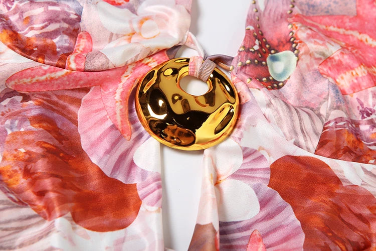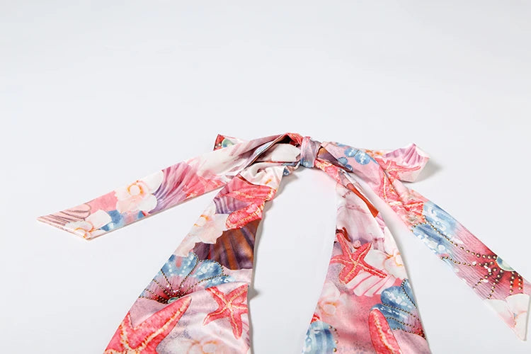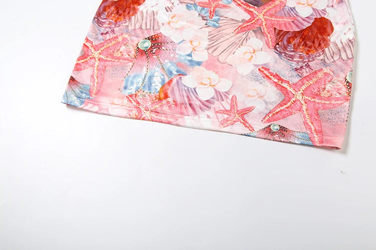 Vestido Justo ao Corpo, com Conchas Metálicas, Estampa Colorida, Sem Costas, Sem Mangas, Estilo Sexy