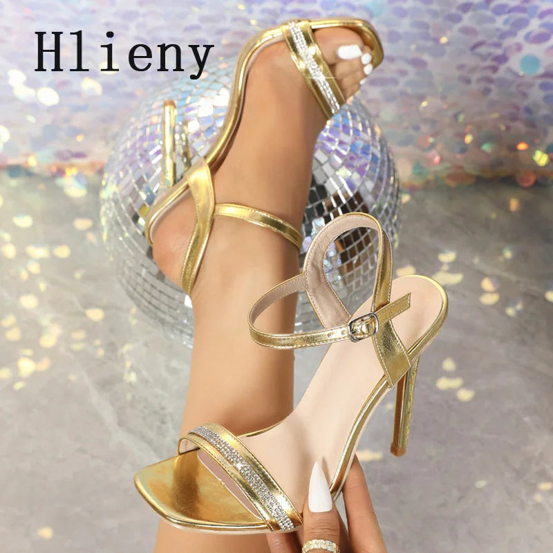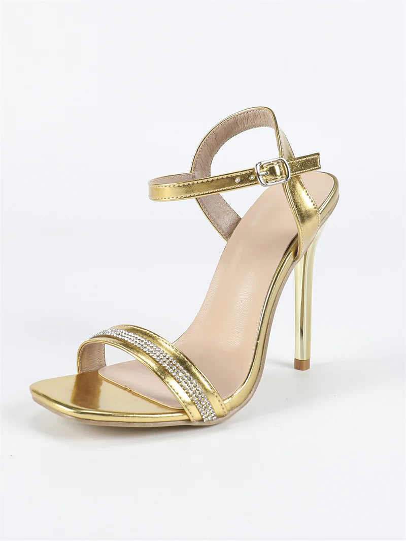 Sandálias de Biqueira Quadrada com Cristais, Estilo Urbano. Tira com Fivela .