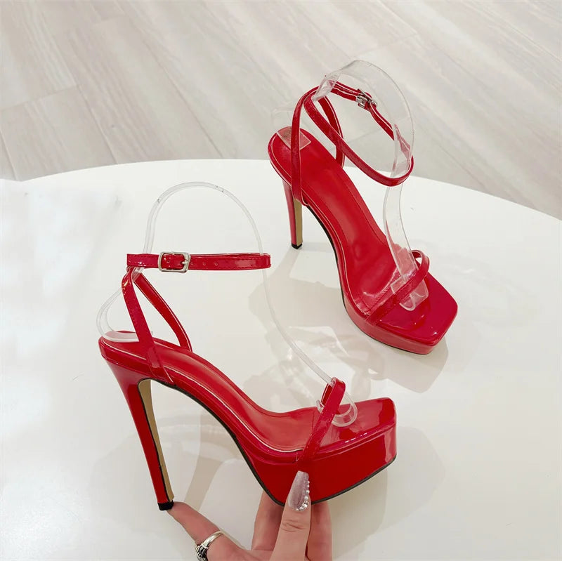 Salto Alto Sexy, com biqueira quadrada, plataforma e salto alto fino