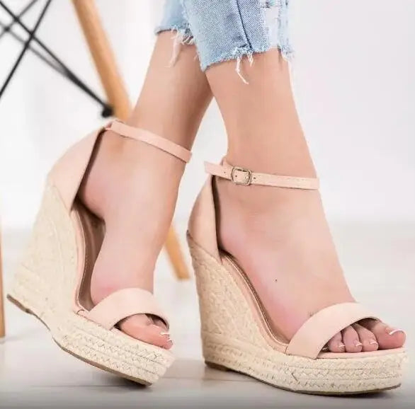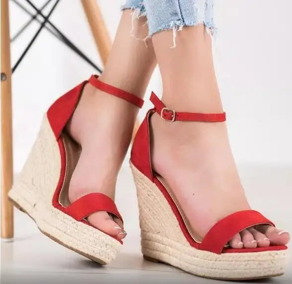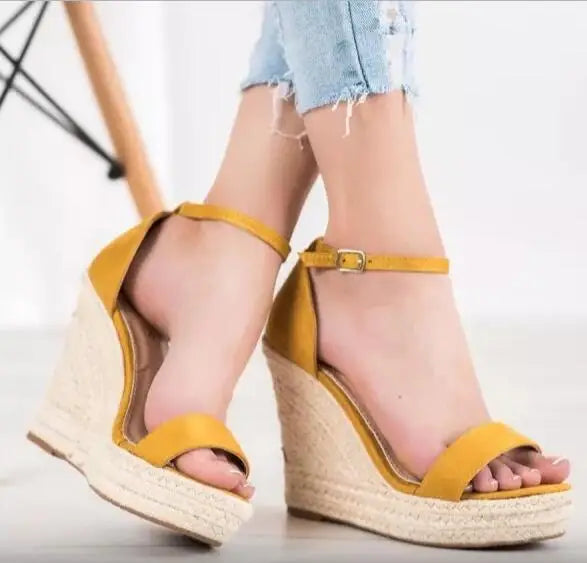 Sandálias Estilo Boémio em Camurça, Plataforma e Salto Alto com Tira no Tornozelo