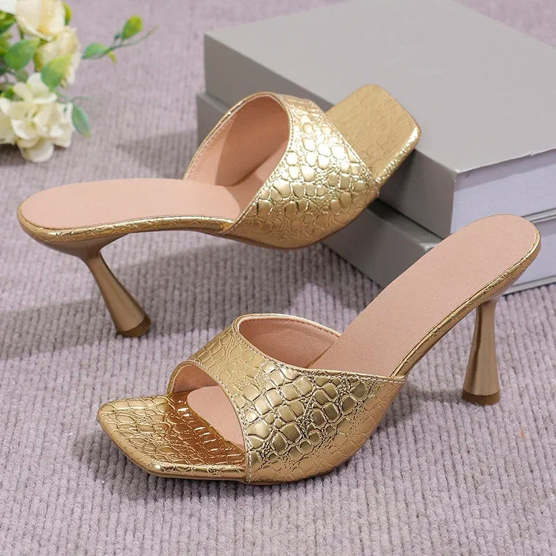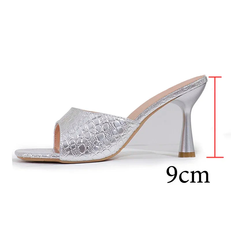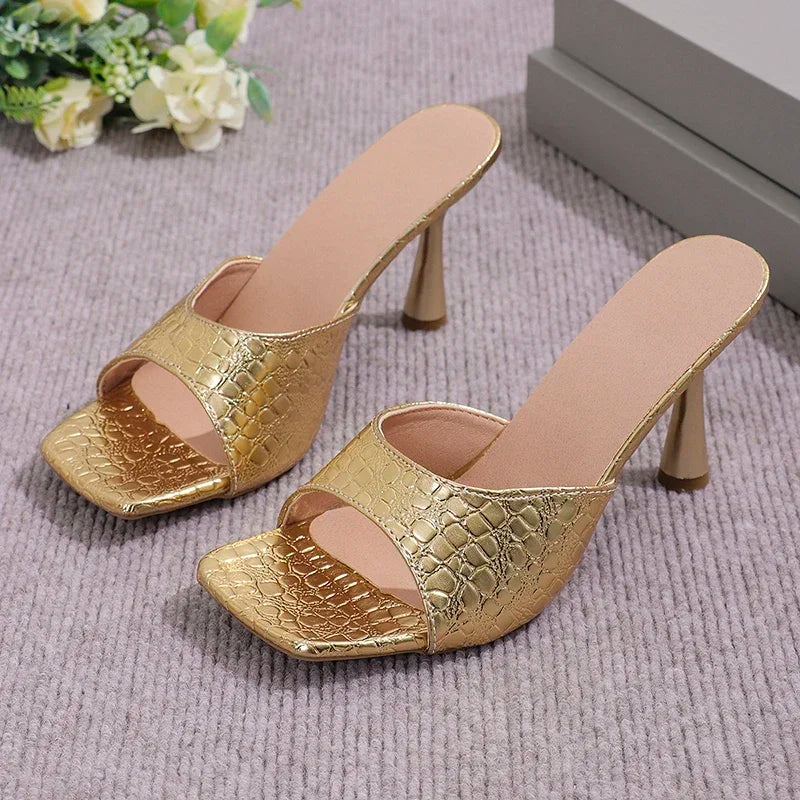 Salto Alto Fino, Bico Quadrado, Chinelos de Verão