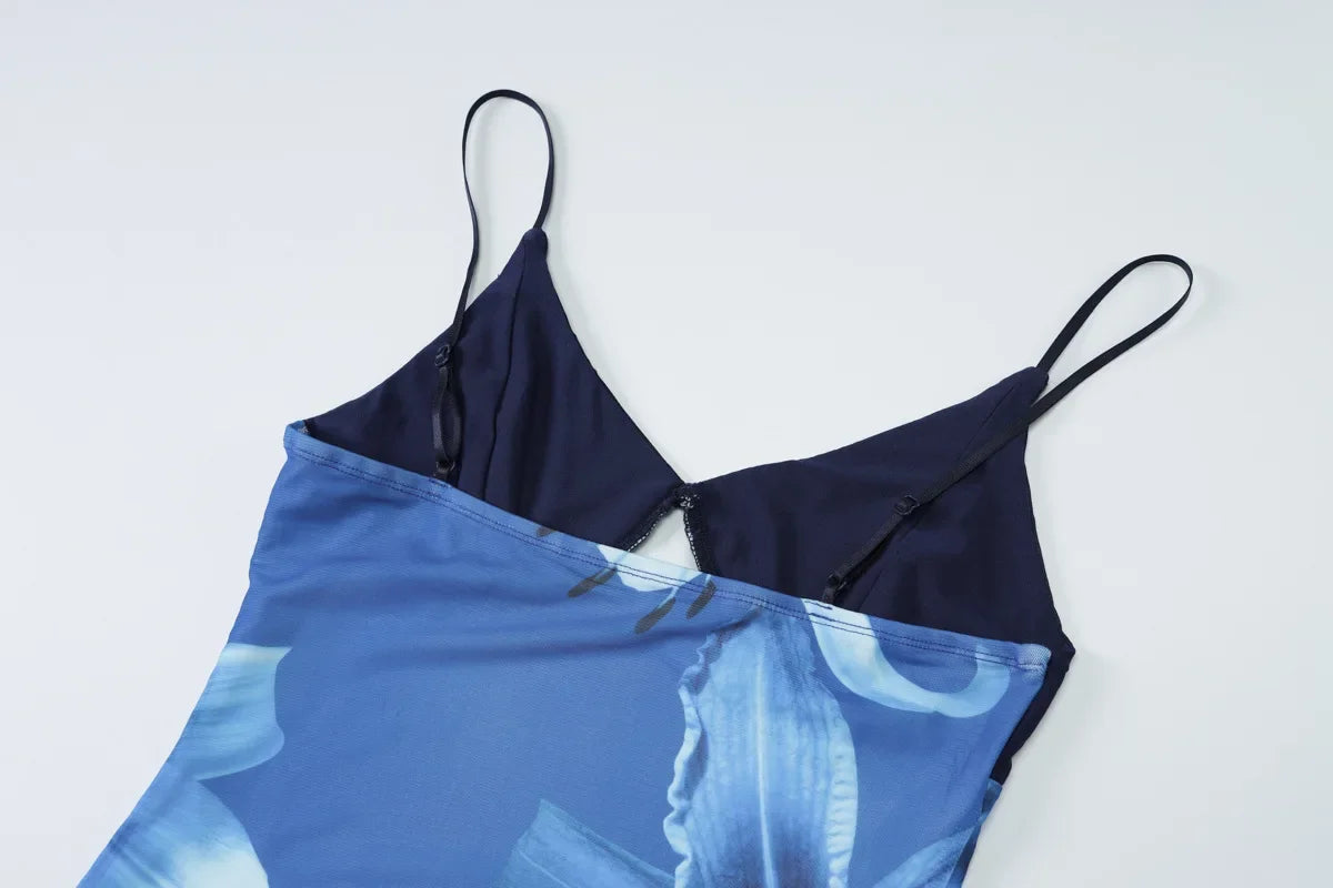 Vestido Longo, Justo ao Corpo, Elegante, Estampa Floral, Sem Mangas, Decote em V, Sem Costas